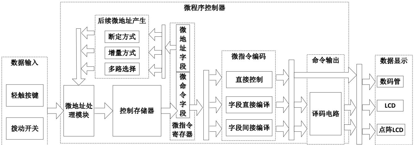 3) 根据功能要求设计微程序控制器的基本功能结构,并采用硬件描述语言进行编程设计实现;