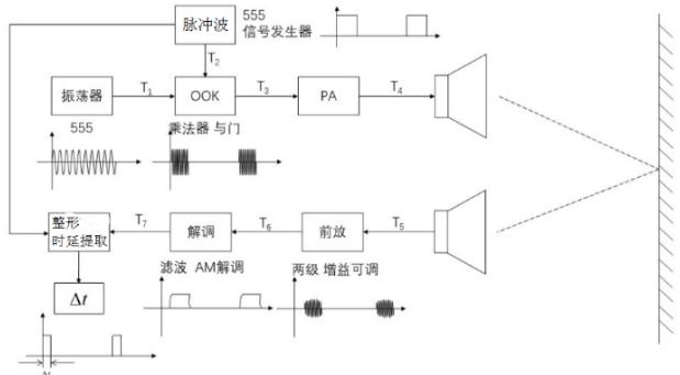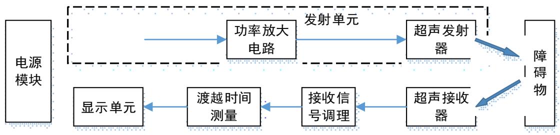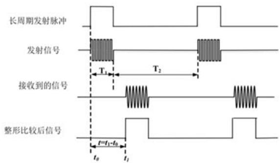 超声波测距系统主要包括超声波发射单元、超声波接收信号调理电路、渡越时间测量单元、显示单元等部分组成。超声波发射器发射超声波,经过障碍物反射被超声波接收器所接收, 开始发射到开始接收之间的时间的差值就是超声波在空气中的渡越时间 t 。根据 $\scriptstyle \mathbf { s } = \mathbf { v } \mathbf { t } / 2$ (v为超声波在空气中的声速), 就可以得出测量点与被测障碍物之间的距离 。超声波测距系统的工作原理和时序分别