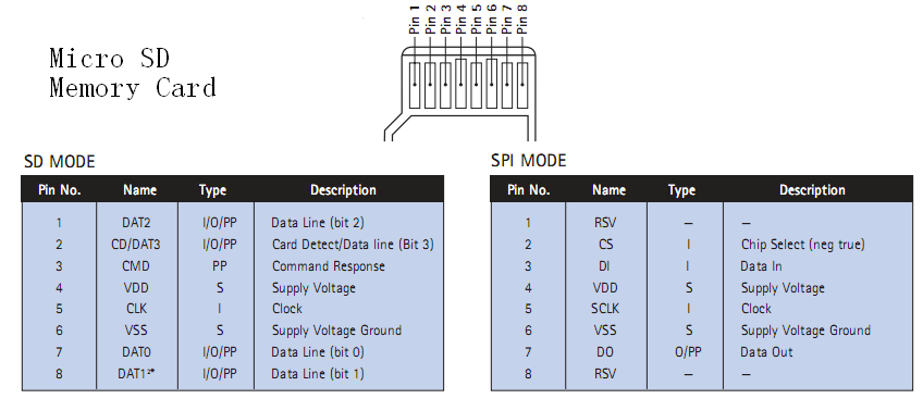 图11 两种模式下SD卡引脚