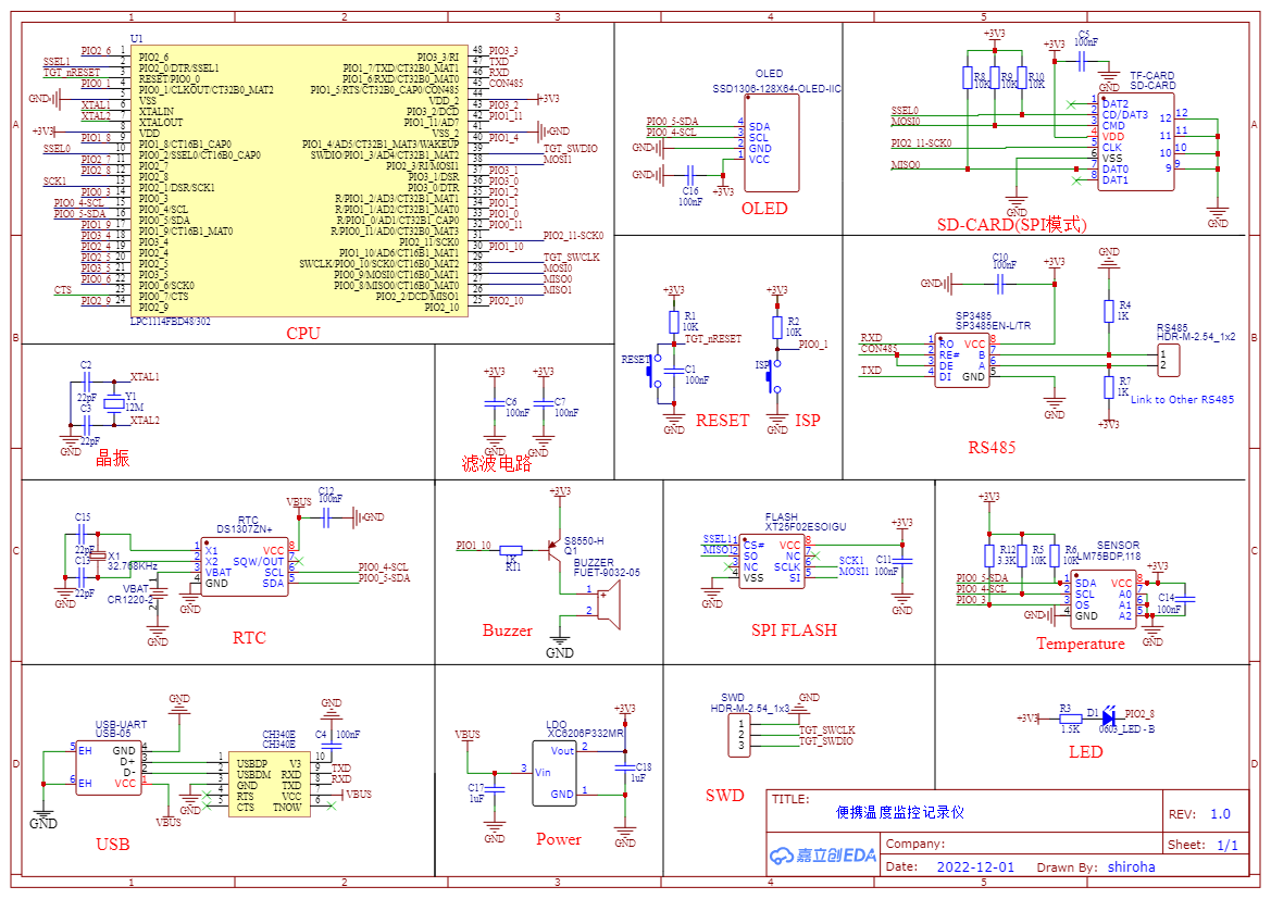 实验题目:基于LPC1114的温度监控记录仪设计