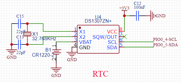 图4 DS1307外设RTC时钟部分电路