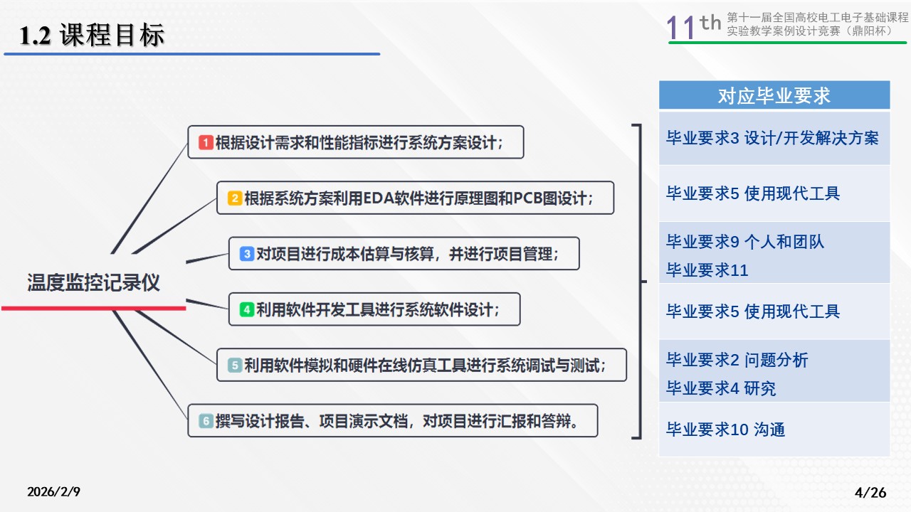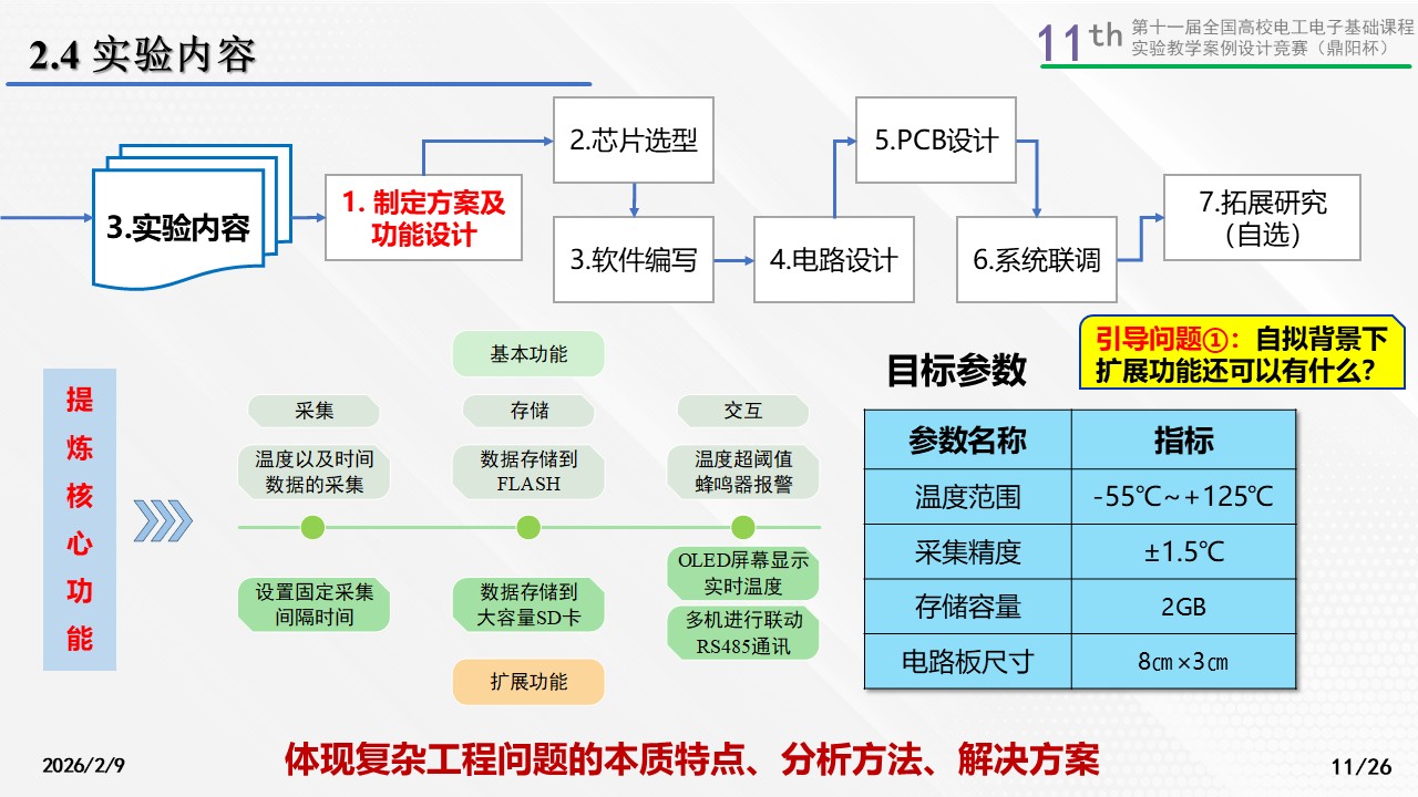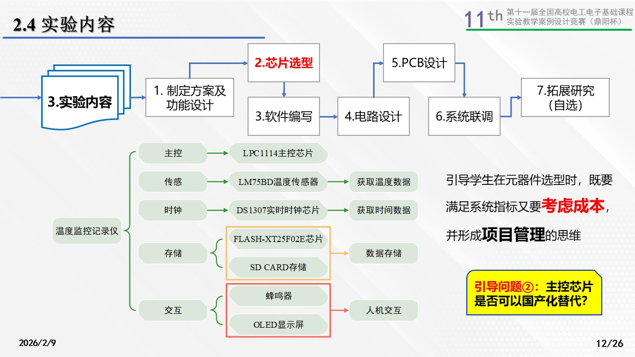 鼓励学生自拟温度监控记录仪背景,并从国家战略角度和产业核心技术出发,教授学生如何解决复杂工程问题,并融入课程思政教育。