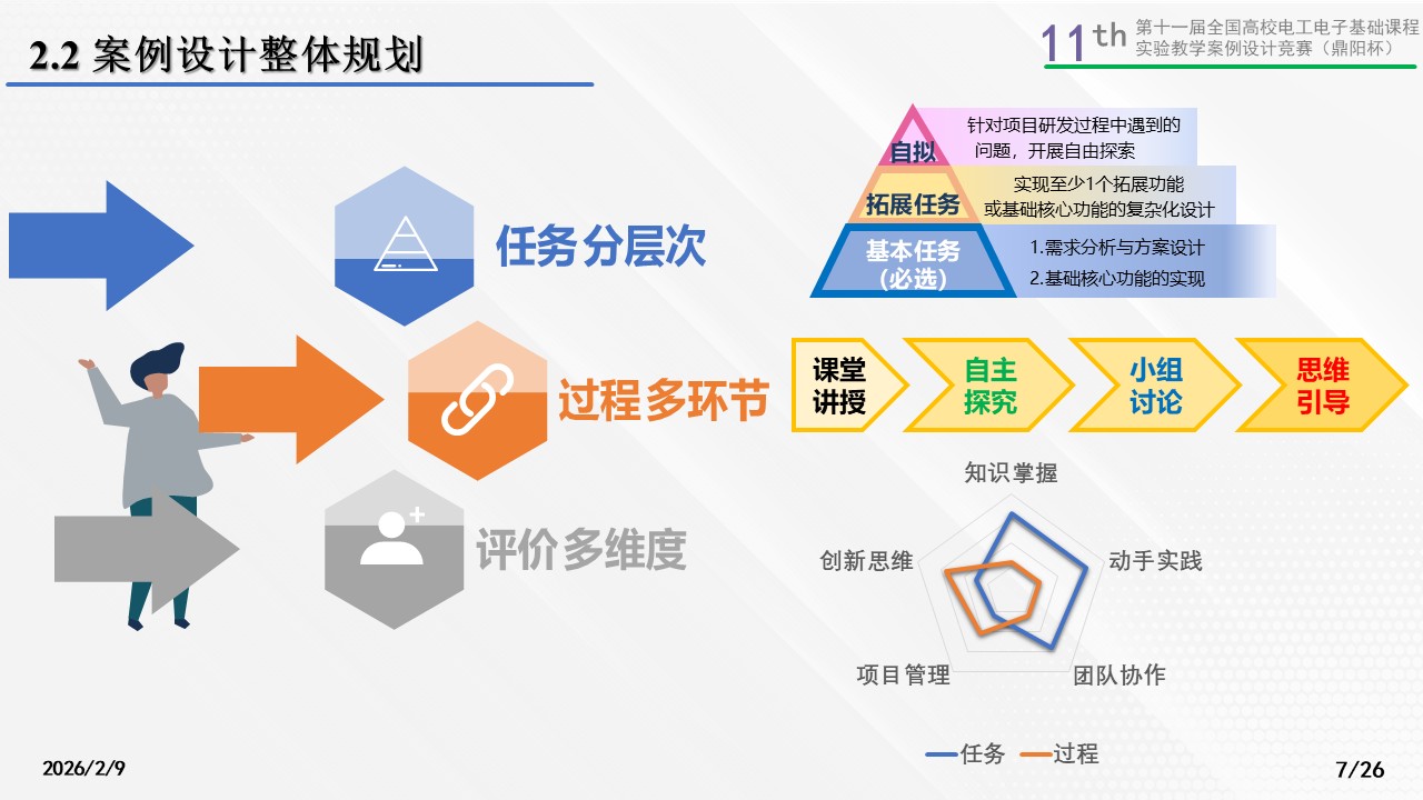 通过学生自拟工程背景锻炼学生发掘问题的能力,同时激发学生自主学习兴趣;通过“乐高”模式为学生提供大量的学习资源库,增强学生学习信心并扩展知识面;设计多层次任务,保障学生基础技能学习,同时区分具有创新意识和拓展思维的学生。