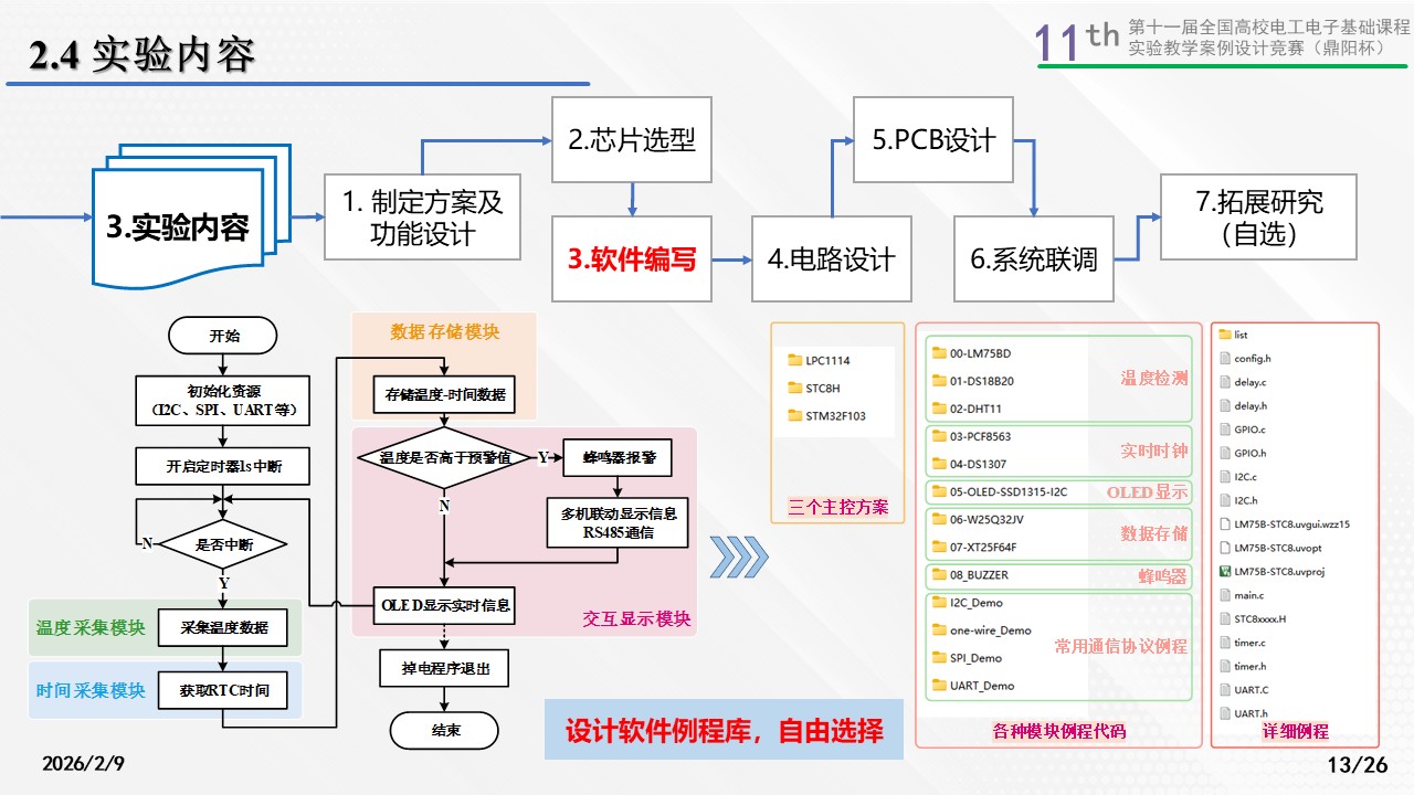 方法引导将包括对学生进行温度记录仪的系统设计方法的引导,例如如何根据性能指标选择元器件、设计系统框图以及软件流程图等。