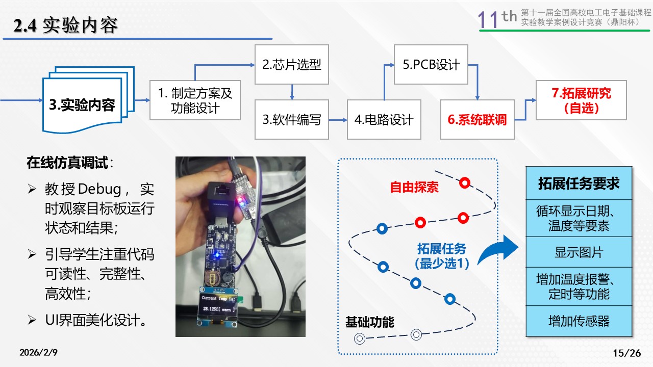 观察节点将关注学生在系统设计、软硬件调试和测试等环节的表现,以及作品的功能实现情况。