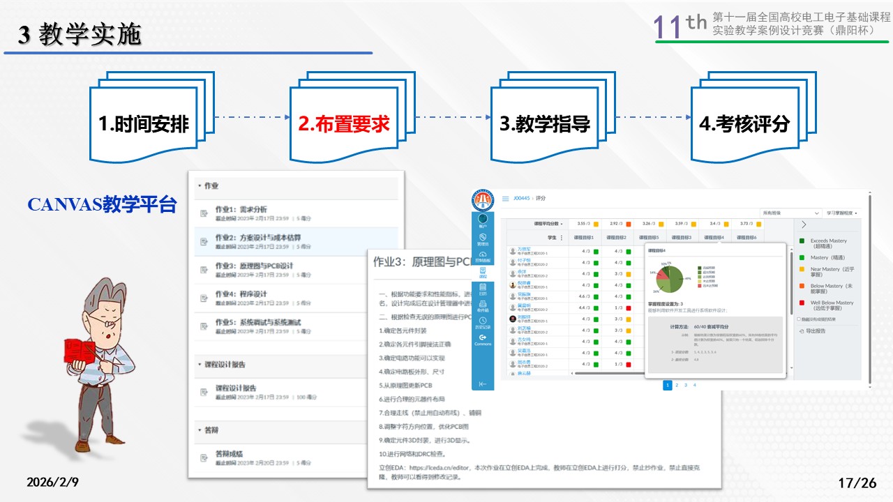 实验教学平台:主要使用本校自主设计的嵌入式教学开发板进行实验教学,并使用canvas线上系统进行课下的交流与互动,可以完成作业提交、批改以及总体进度的查看。