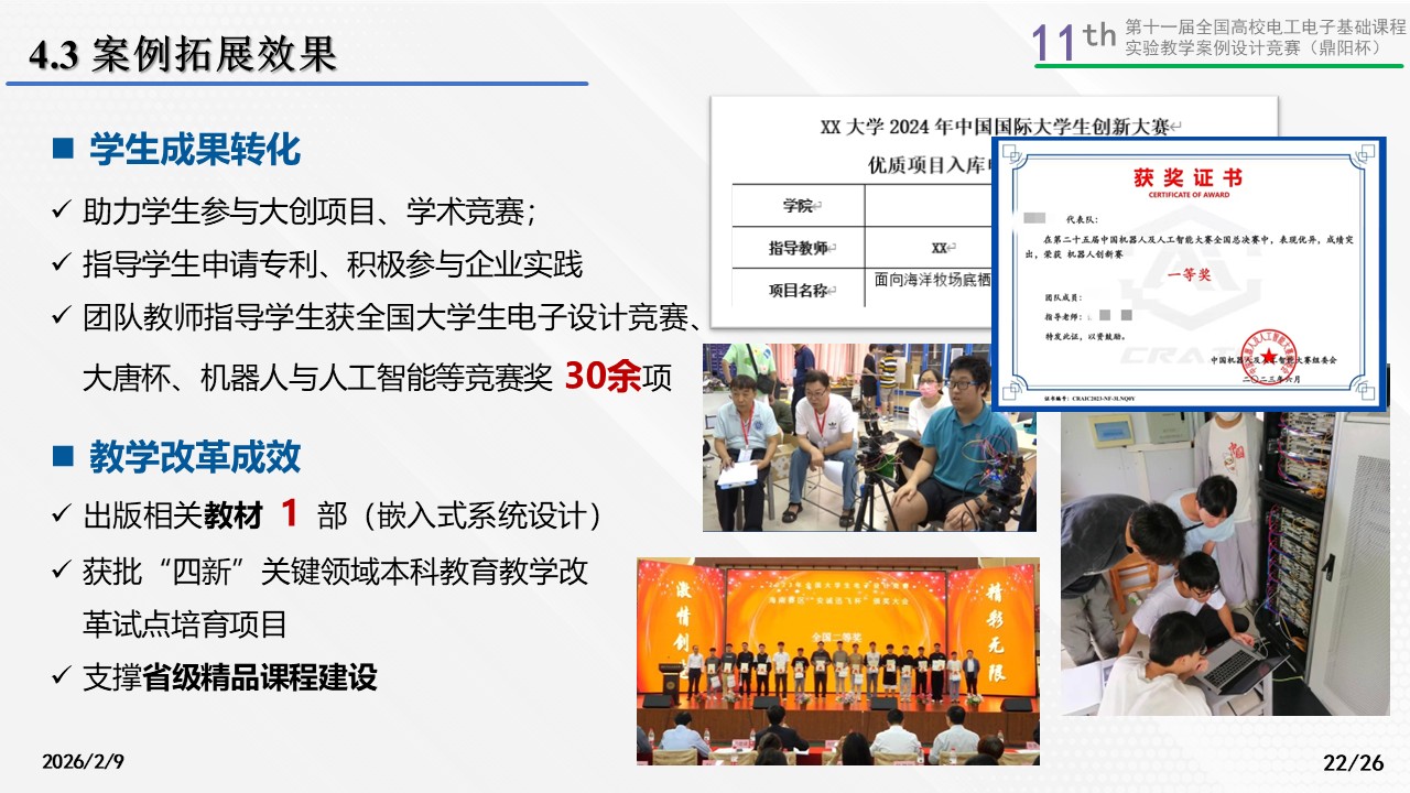 长期目标建立:自选企业调研,形成需求报告;撰写强相关实用新型专利;申报大学生创新创业训练项目;参加任意强相关学科竞赛。针对不同学生特点从四个维度实现教学闭环。