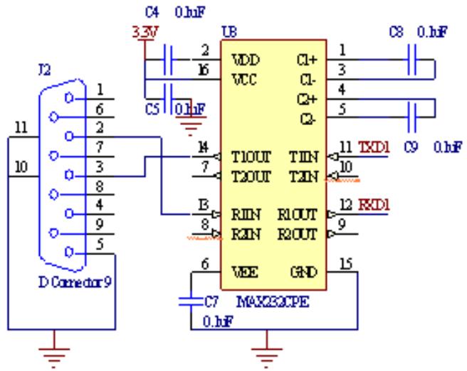 上位机实现对测试数据的分析、存储、打印等高级功能。上位机与下位机之间的通信选用 RS232通信协议进行数据的传递,相应的接口电路如图 5所示。