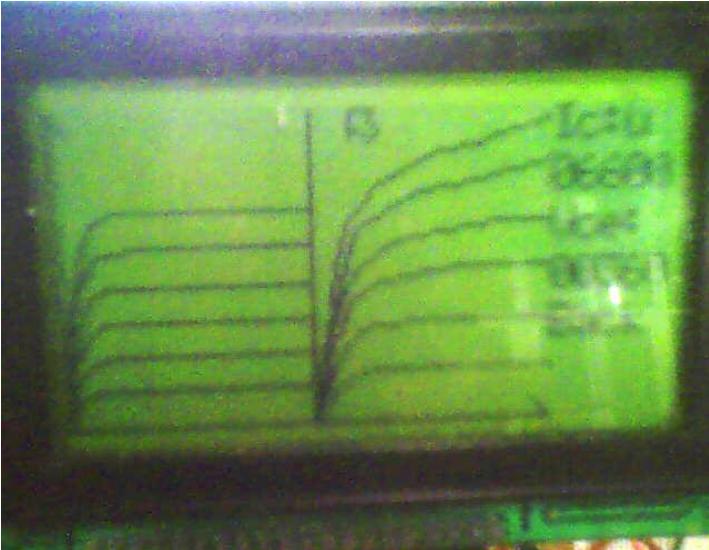 在饱和基极电流建立的条件下,D/A输出到基极的电压不变,A/D进行采样,每采完一个点,数据被发送到显示器。同时, $\mathrm { D } / \mathrm { A }$ 输出到集电极的电压根据被测试晶体管的类型自增或自减一个幅值,实现 Vce 的递增,从而测得一条采样线的坐标序列值。得到的序列值暂时存放在显示缓存中,当采完设置的采样点值后,显示缓存的数据逐一在显示屏描点显示。程序流程图如图 7 所示。