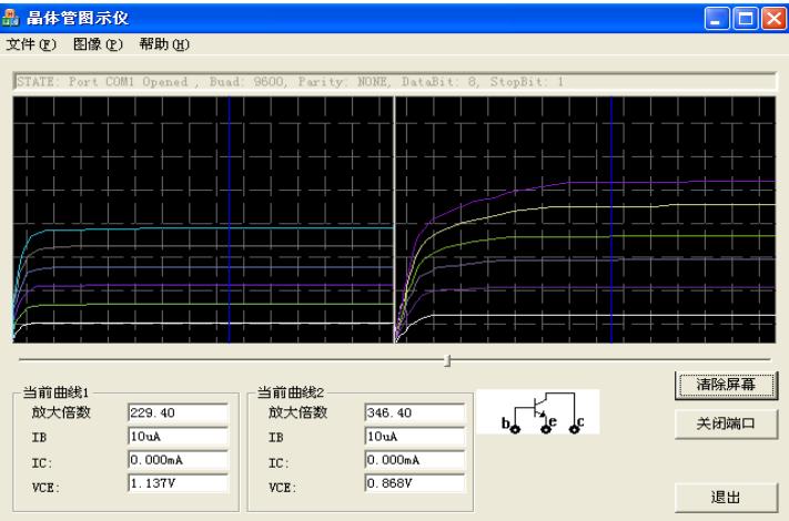 5) 实验测试的数据(如型号和电流放大倍数)可直接由液晶显示器显示,输入输出特性曲线需要选择合适的曲线绘制算法,在液晶显示器或计算机中显示;