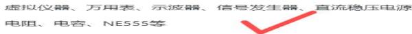 直流稳压电源、信号发生器、数字示波器、万用表、FPGA实验箱或口袋实验箱Proteus 或 Multisim 仿真、Quartus 软件、NE555、电阻、电容等。