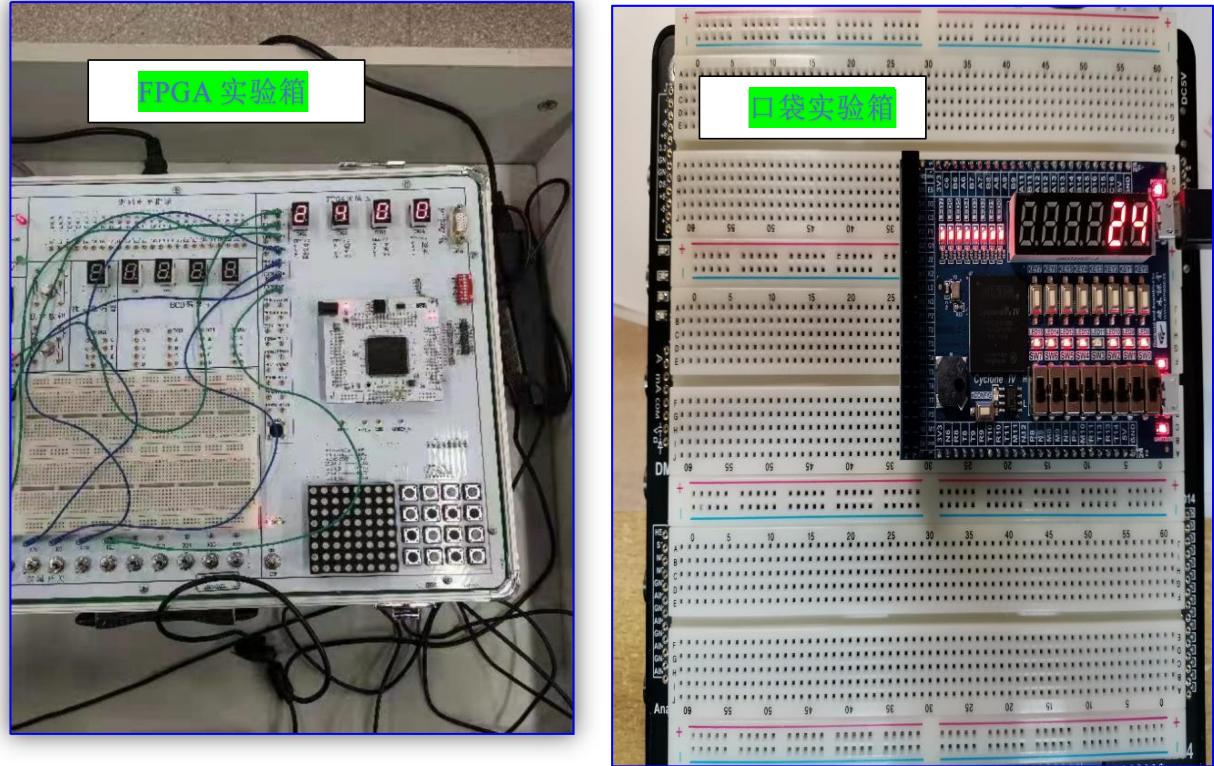 改变了传统的中小规模集成电路的形式,采用FPGA 实现平台、虚拟仪器口袋实验箱+FPGA核心板的模式。