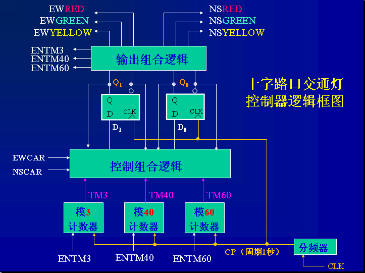 (3)展示课堂讲过的交通灯的例子,展示电路框图。