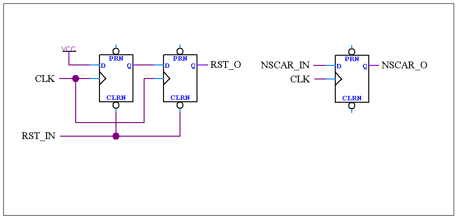 (25)板书异步复位,同步释放的电路图。让学生抄下,并让学生课后自己用VHDL代码设计,进行功能和时序仿真,验证该电路功能。