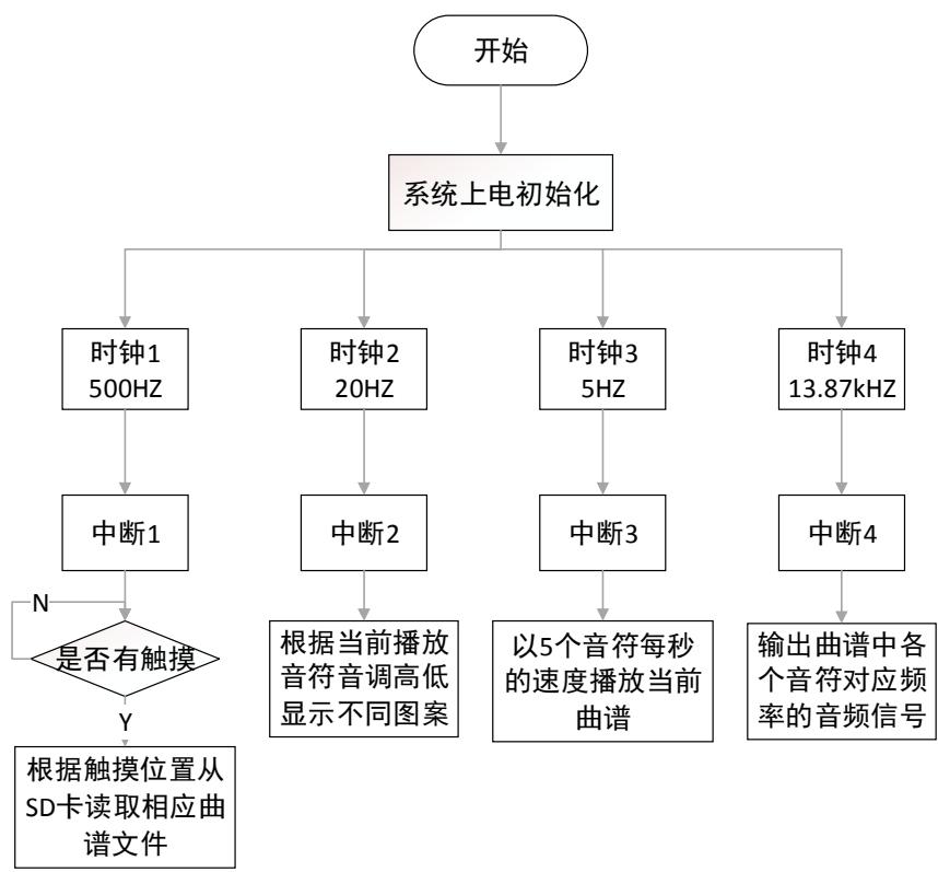 每个模块可以独立完成并验收;也可以完成各模块间的系统连接,最终实现由触摸屏控制音乐播放及 LED 点阵花型随音乐变换的控制过程。