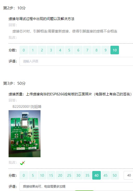 | 2 | 元器件焊接 | 焊点机械强度高、导电性好、较美观(25分) | |||