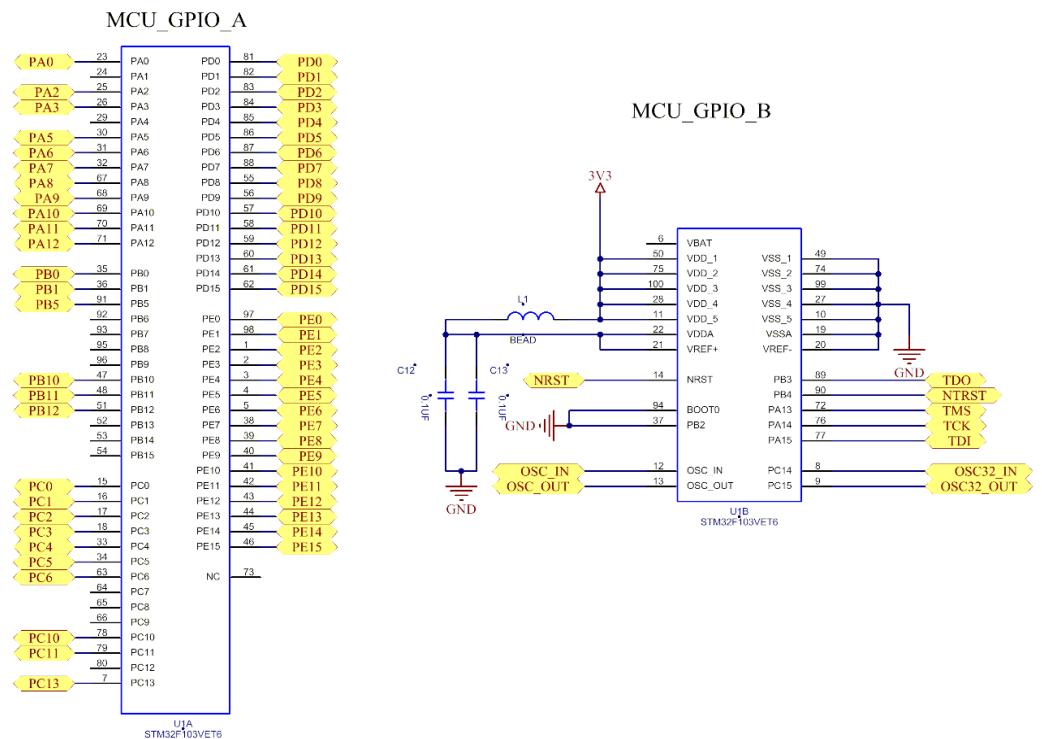 图 2 STM32F103VET6 各 GPIO 口引脚原理图