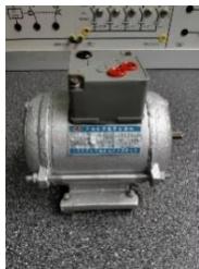 如图 2 所示为负载单相异步电机实物图,电机参数为 150W/0.6A、电压 380V/220V、转速 1400rpm。