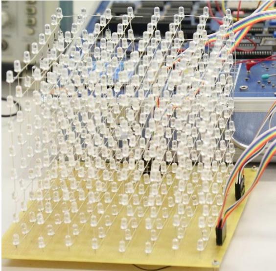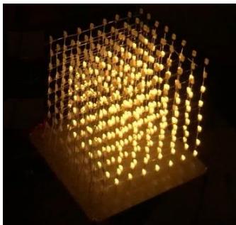 光立方是将若干个发光二极管(LED)组成一个三维立方体,通过变换不同位置上 LED 亮灭状态实现在 3D 空间上显示立体的图形、文字等。光立方是“裸眼”3D 最直观、最简易的实现方式,集知识性、观赏性、娱乐性于一体。本实验要求学生综合利用微机原理、数字电子、模拟电子知识,设计硬件方案,自行焊接、搭建光立方及其外围电路,编写、调试软件,实现随音乐声强和频谱在3D 空间上不断变化的“律动光立方”。具体任务包括: