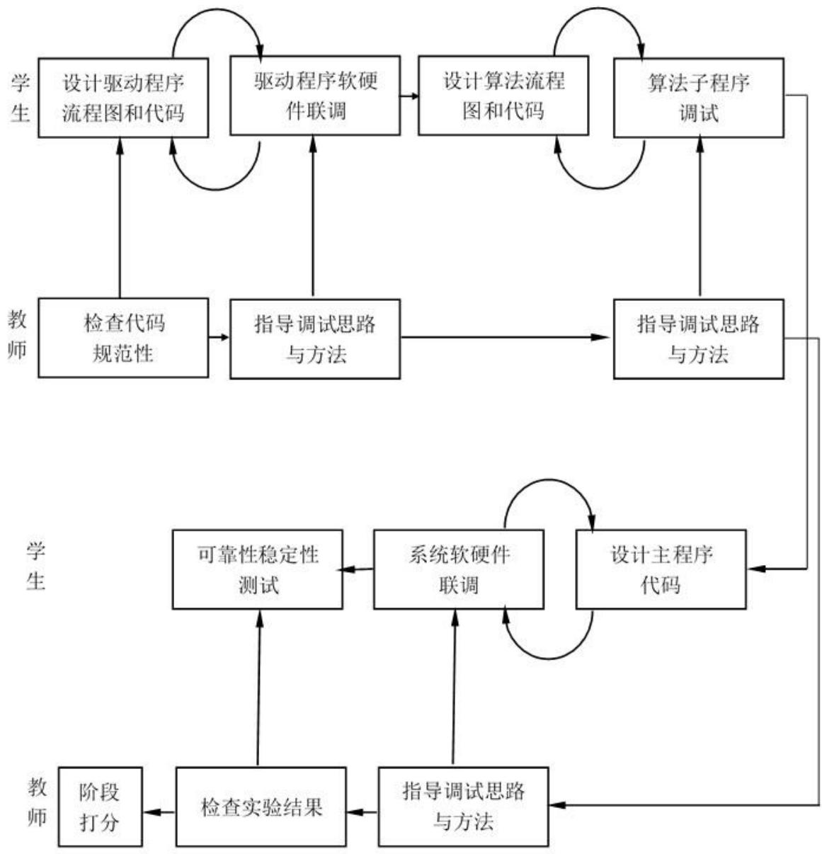 图5 软件设计和软硬件联调阶段教师和学生需完成的工作任务