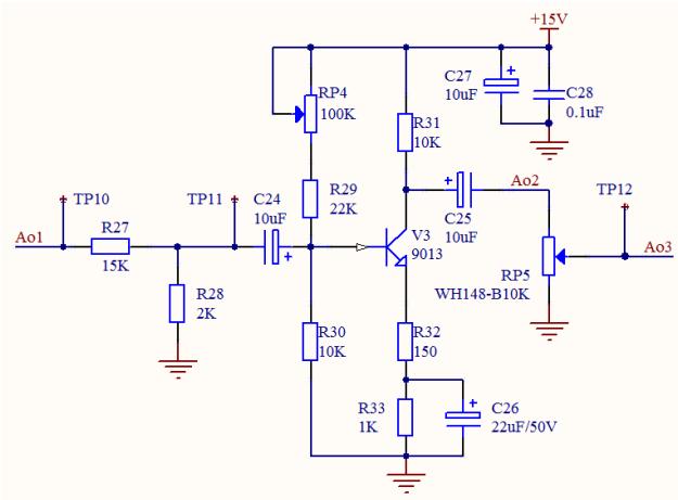 | 三极管电压放大电路 | U3-c工作点:4V±0.1V | V3-c= ;V3.B= ; V3-E= ; | |