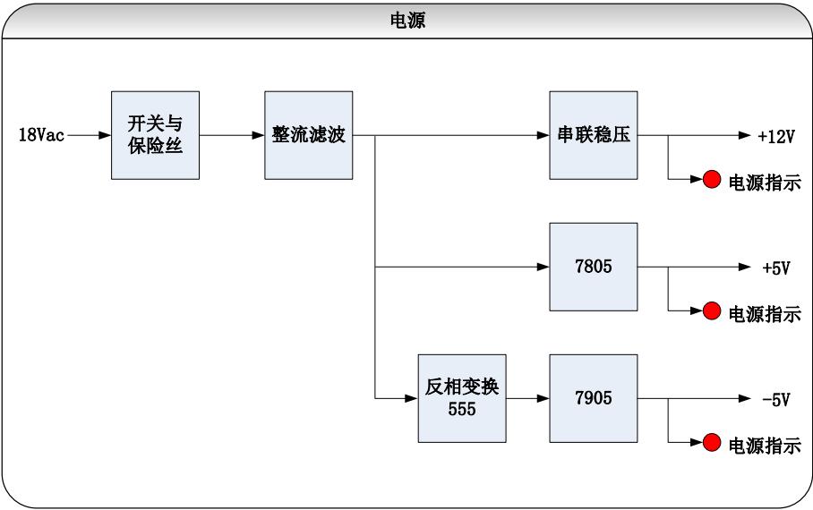 学习掌握整流滤波电路、串联稳压电路、三端集成稳压电路和 555 反相变换电路等电源电路的工作原理;