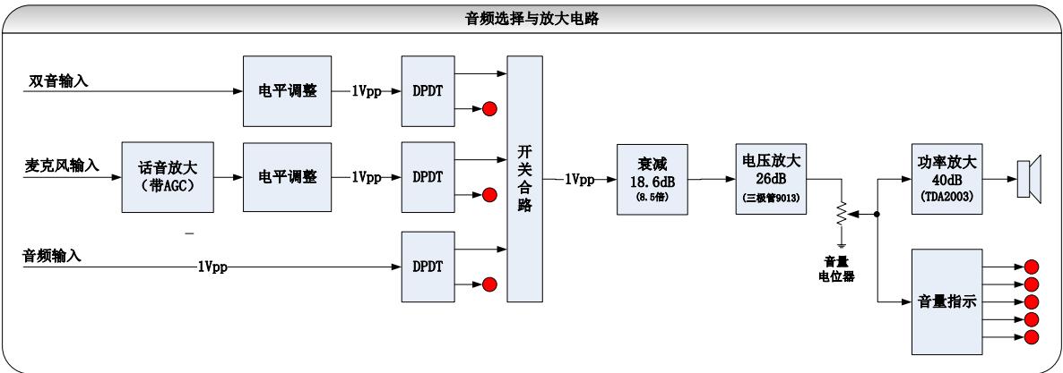 | 放大器 | P。(不失真):≥12.8Vpp (P≥5W) | 电平指示:0.2V 线性增量,D、D10`D9、Dg、D7依次点亮 | |