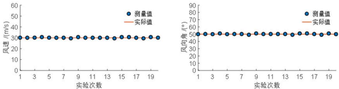 图 8 多次实验风速风向测量仿真结果