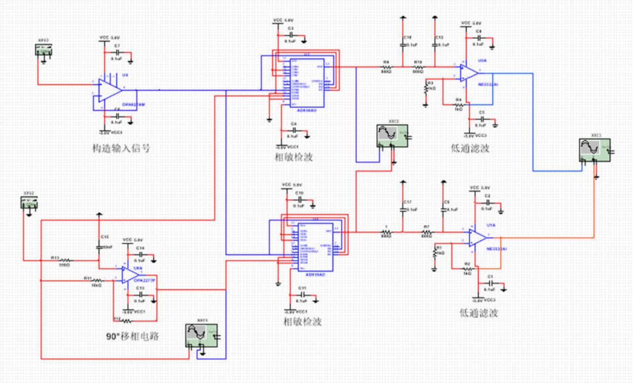 图6 核心部件正交矢量锁定放大器电路原理图