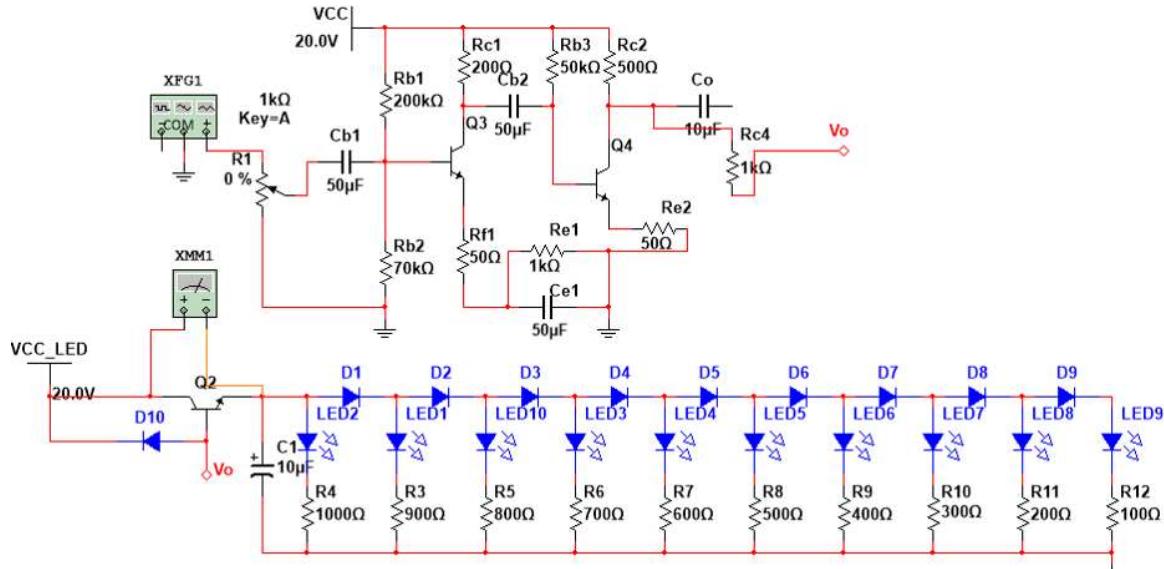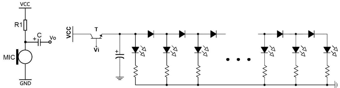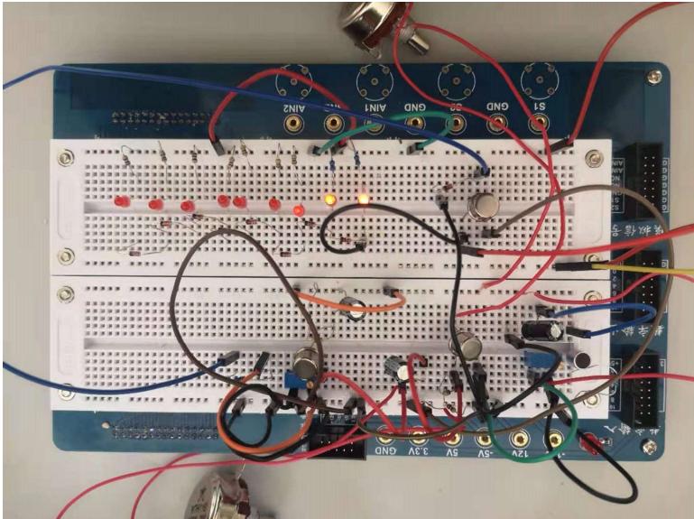 课上搭建环境音量指示电路: