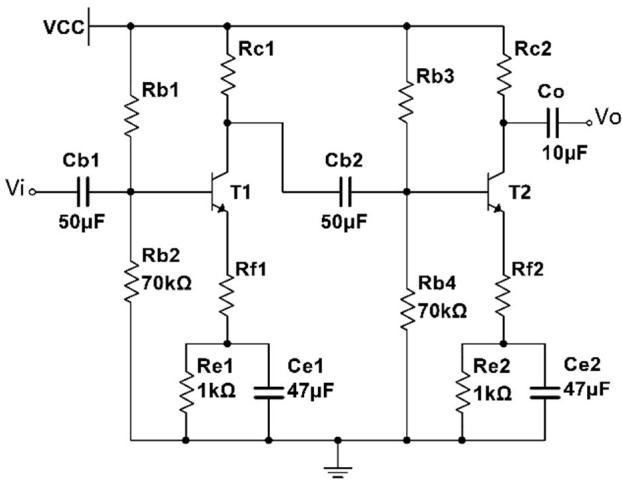 请设计如图 2 所示多级 RC 耦合放大电路。要求: