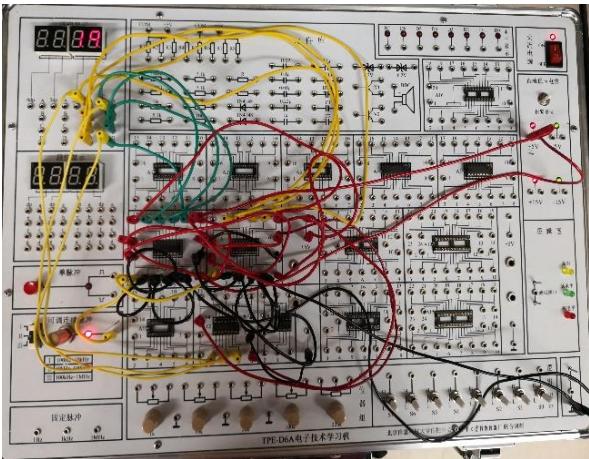 (2)软件仿真验收通过的同学,领取 74LS160 等耗材,基于数电实验箱,搭建完成硬件电路,并进行简单的提问答辩验收。