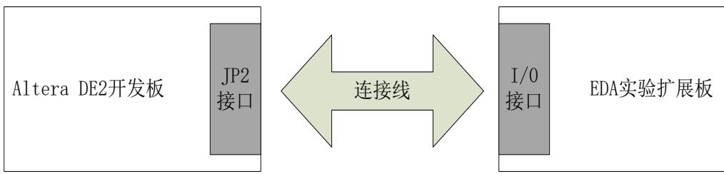 DE2 开发板、拓展板、两者连接方法见下图 13、14、15。