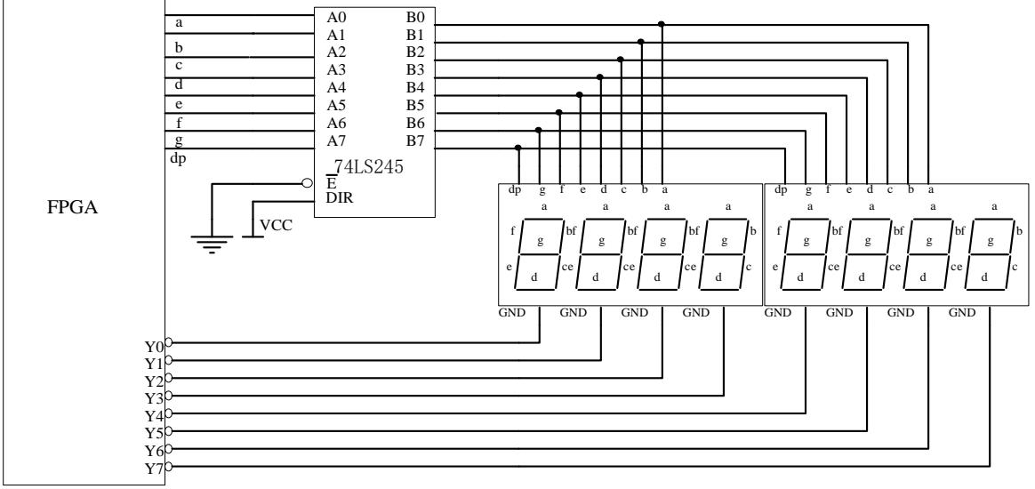 基于 FPGA 实现的数码管静态显示电路原理如下图 8。