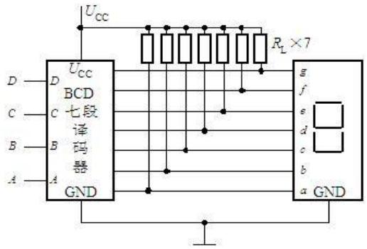 一个四位的 BCD 码(或二进制码)经过七段译码电路后,可以在一个数码管上显示出$0 { \sim } 9$ (或 $0 { \sim } 9$ ,A~F)的数字。多位七段数码管可以显示多位十进制(或十六进制)数字,其显示驱动分静态驱动或动态驱动。