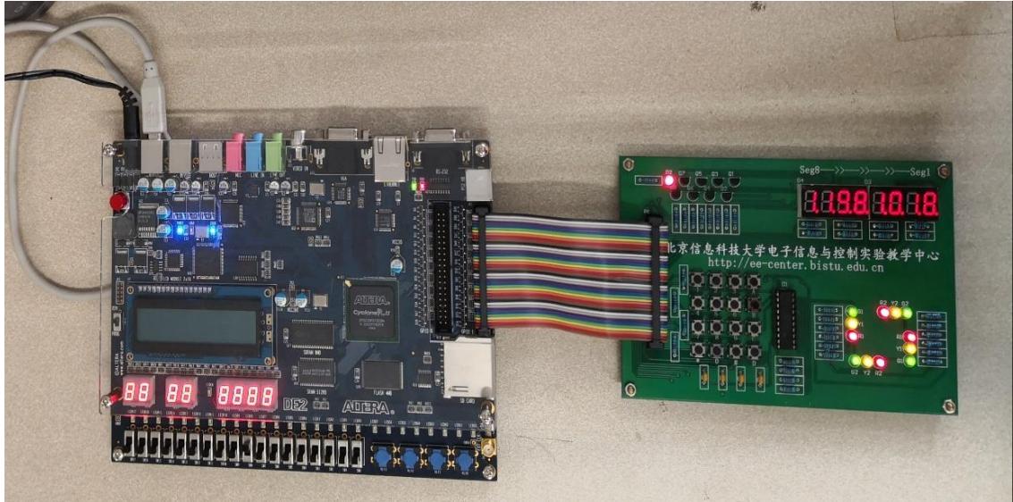 (3)要求学生在 DE2 开发板及拓展板上完成电路的调试和功能测试,记录实验结果。