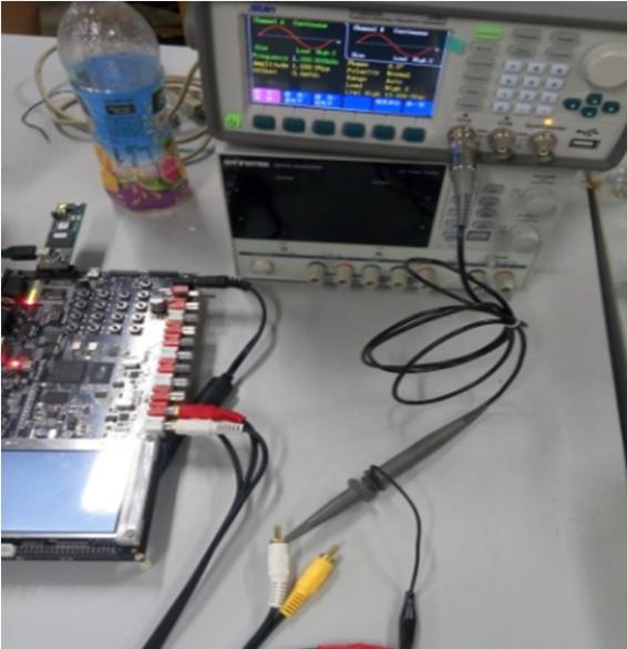 由于该课程设计能将数字信号处理所学知识点直接通过动手在示波器直观地看到信号变化的过程,对学生的实验设计、 工程开发能力能够进行非常有效的培养。 本课程的实验效果如下: