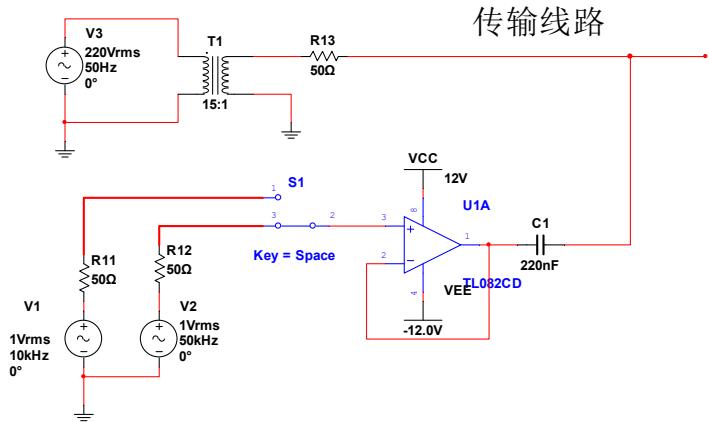 模拟电力线载波传输实际应用,当传输线上负载发生变化时,频率信号仍能有效传输。