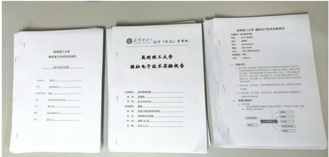 学生在报告中需要对自己的实验方案、电路设计进行总结,并与其他同学的实验方案进行优缺点对比: