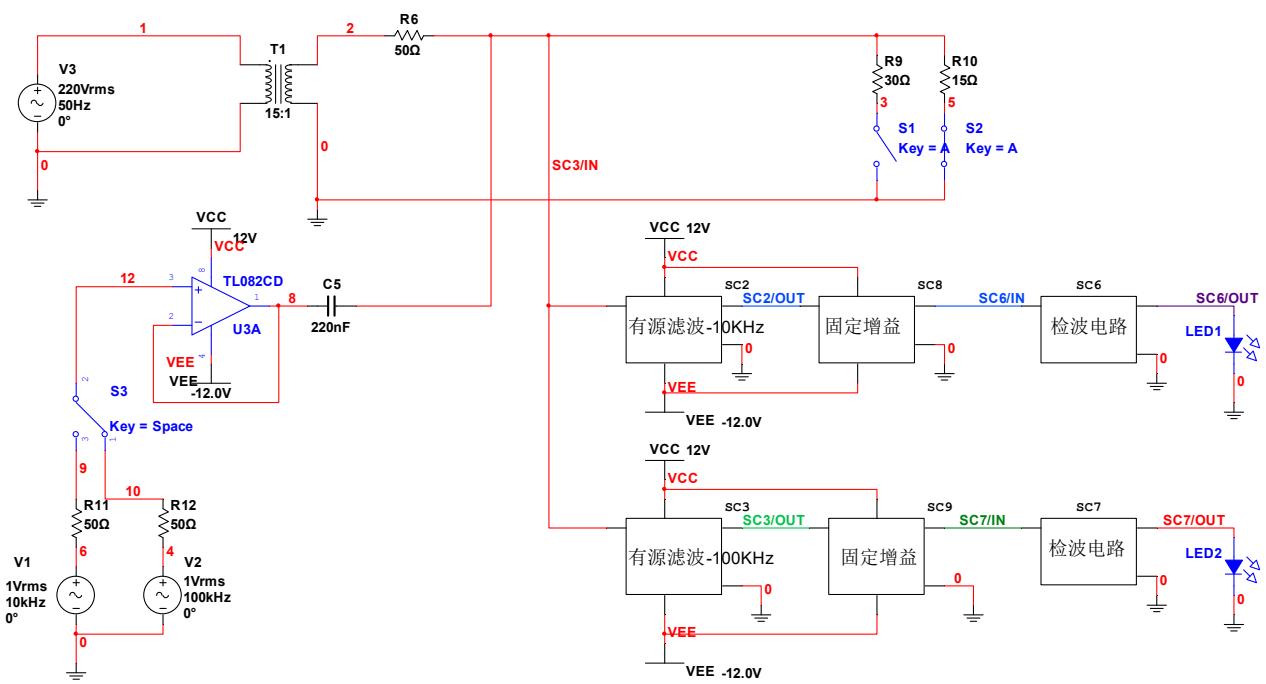 结合同相跟随器、自动增益控制电路等实验内容,调整电路设计,实现变负载稳定传输功能。