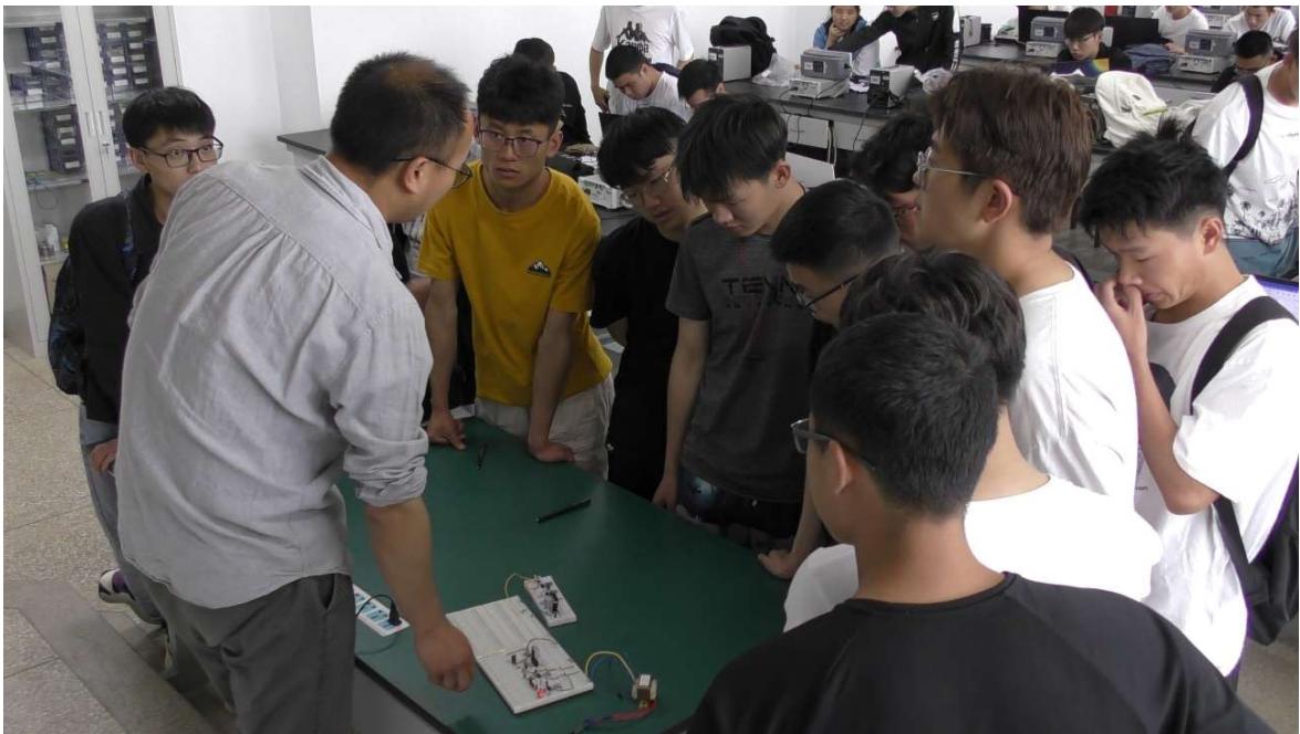 现场播放教师录制的实物演示视频,使学生对电路功能有感性认识,激发学生学习、实验兴趣。