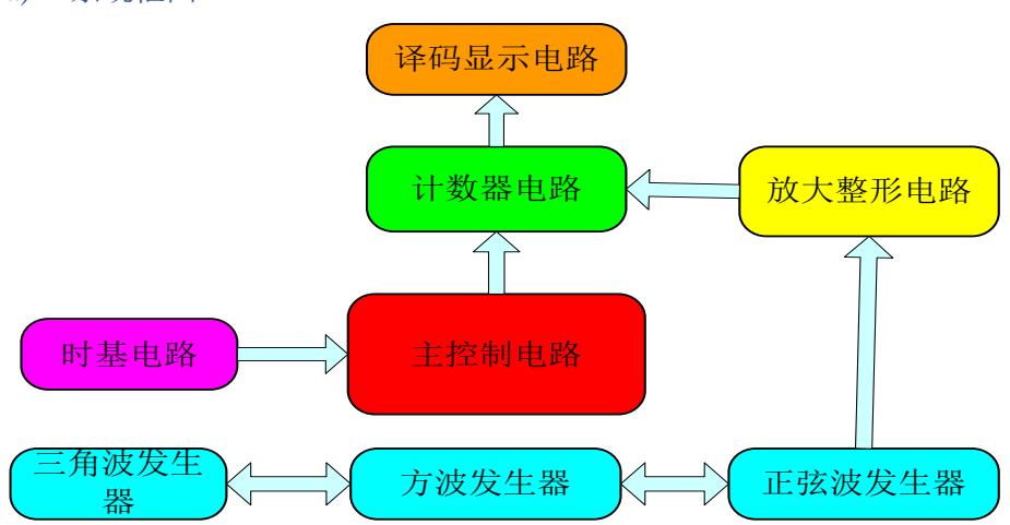 设计任务:设计一个能够产生三种基本波形(正弦波、方波、三角波)的电路,并且用数字的方式显示出波形的频率。