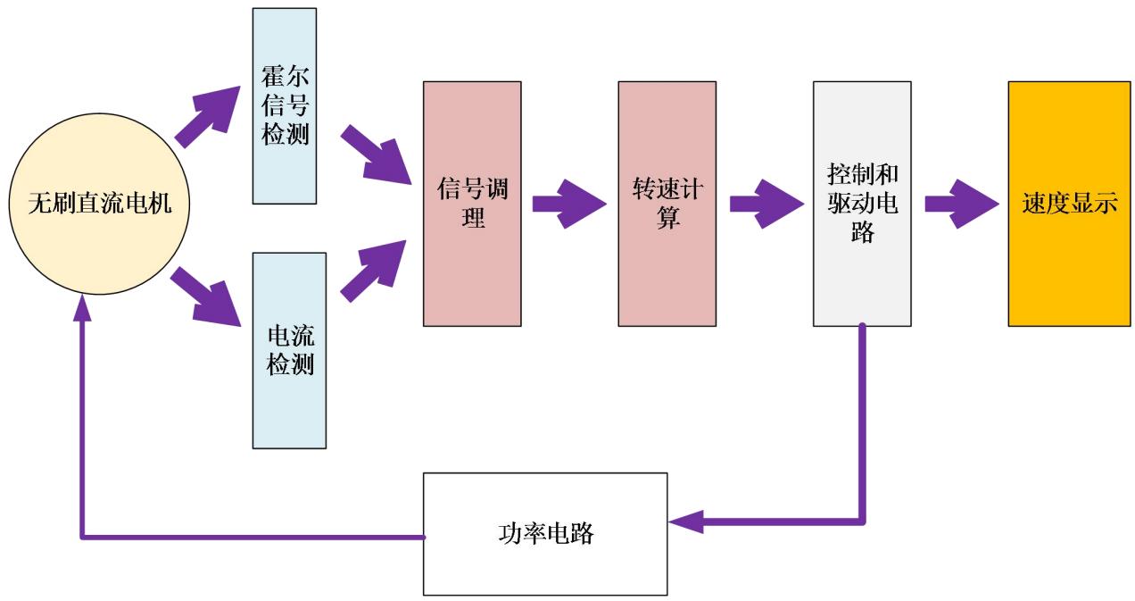 4) 通过无刷直流电机霍尔信号计算出电机的转速,并将转速信号以数字的形式显示出来;