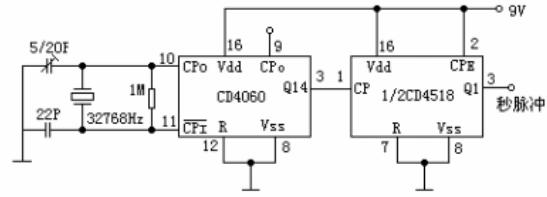 图 1(b)基于 CD4060 设计秒脉冲电路