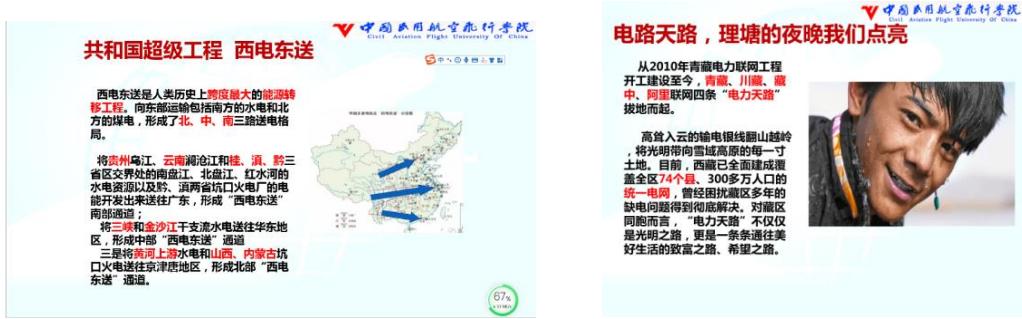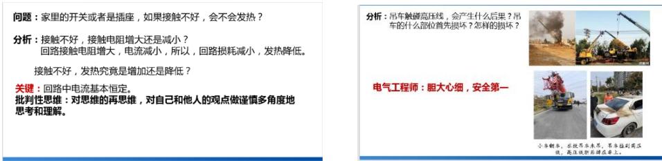 1)根据正弦交流电路,在实验引入阶段,结合实验内容,进行思政教育,引入西电东送,电力电路等案例,提升学生的民族自信和文化自信,培养和引导学生建立到边远地区建设祖国的意识,如图16所示: