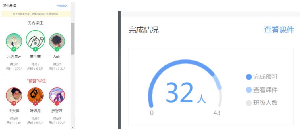 2)课堂表现:预习情况,到课情况,课堂讨论等情况等,雨课堂程序可对学生上课情况进行实时监控,如图 23 所示,教师实时掌握学生上课情况,有利于提高教学质量。