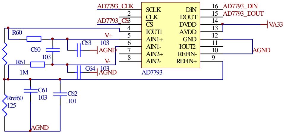 学生通过浏览ADI、TI 等公司电子器件资料,选择合适的ADC器件,为减少电路复杂度,引导学生熟悉并采用集成了激励电流源的 ADC器件。