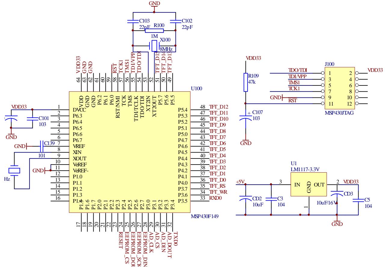 | 主要器件 | MSP430F149,PT100,AD7793,存储器 AT25080,MAX232等。 | |||||