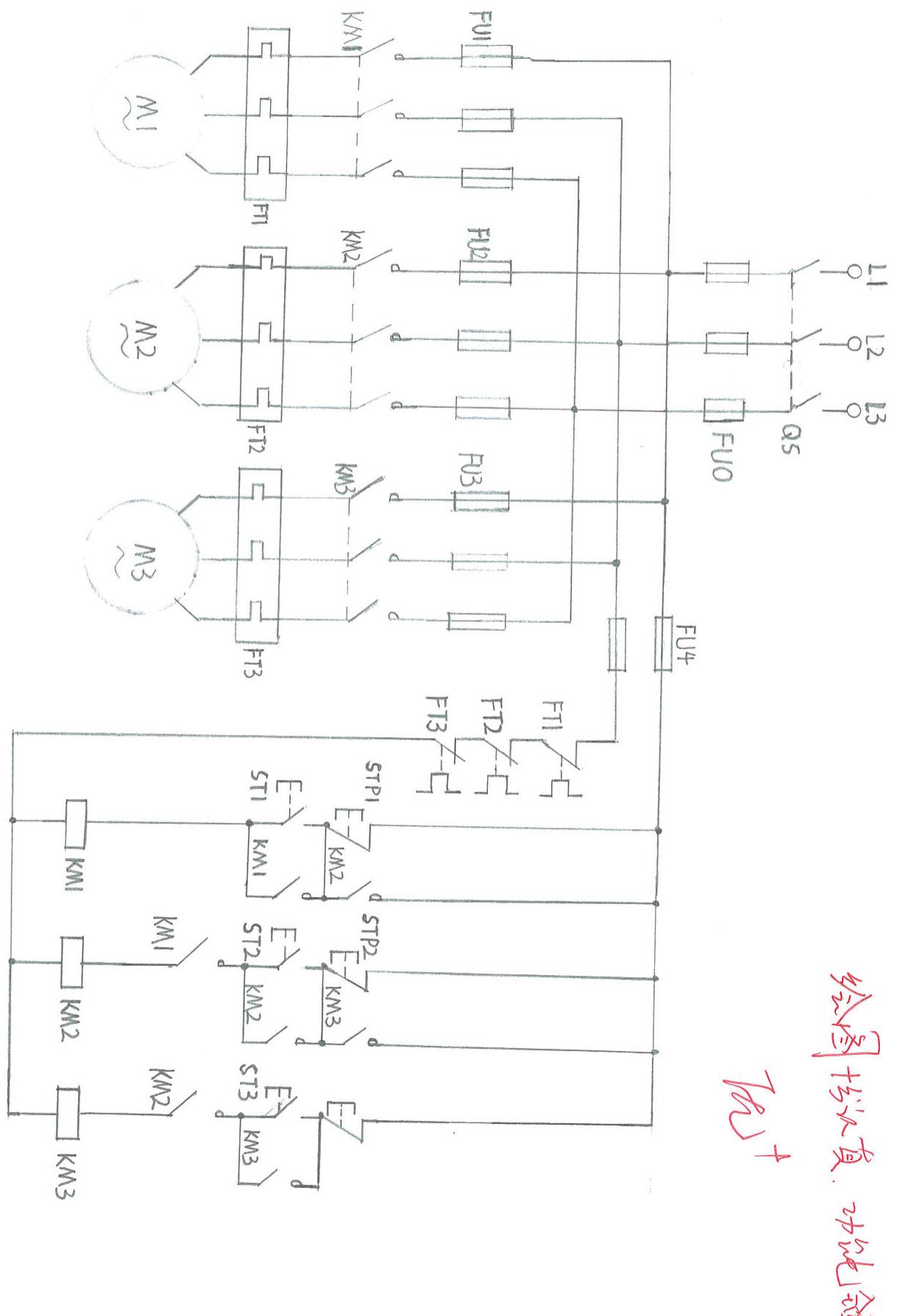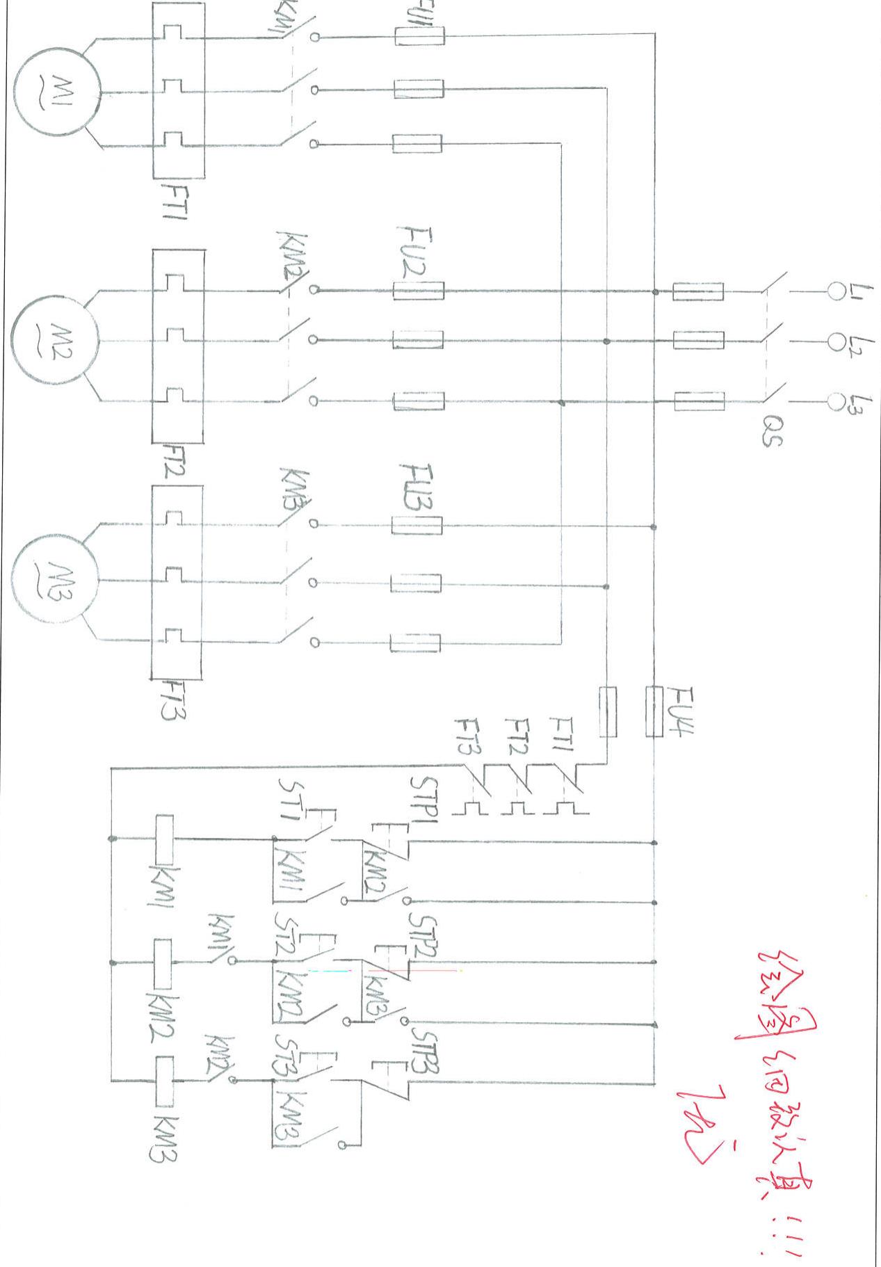 (1)识读三相电机控制排水系统的的电气原理图;