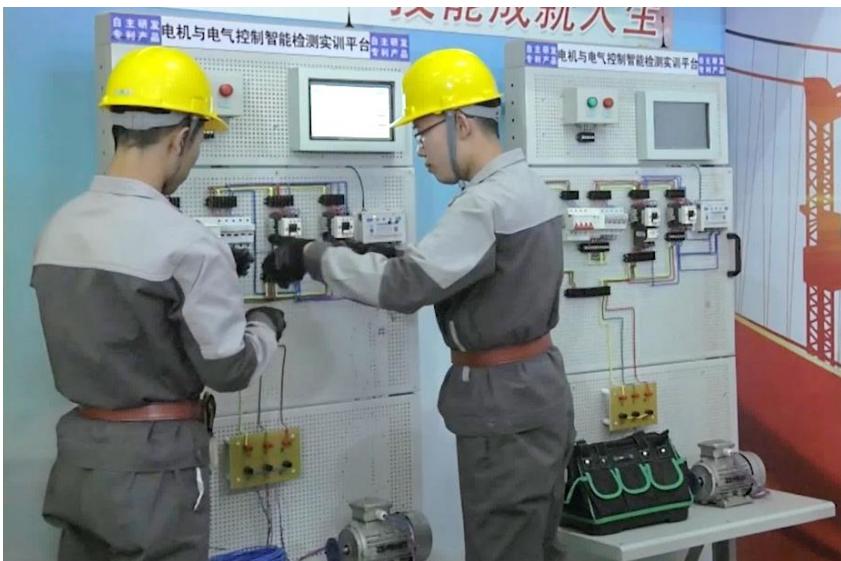 图10 学生利用电机与电气控制智能检测实训平台进行实操